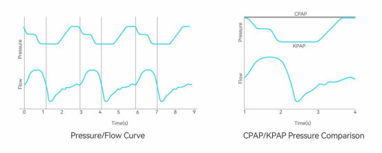 KPAP stands for Kairos Positive Airway Pressure, a dynamic pressure regulation technology based on respiratory cycles, with the following main features: